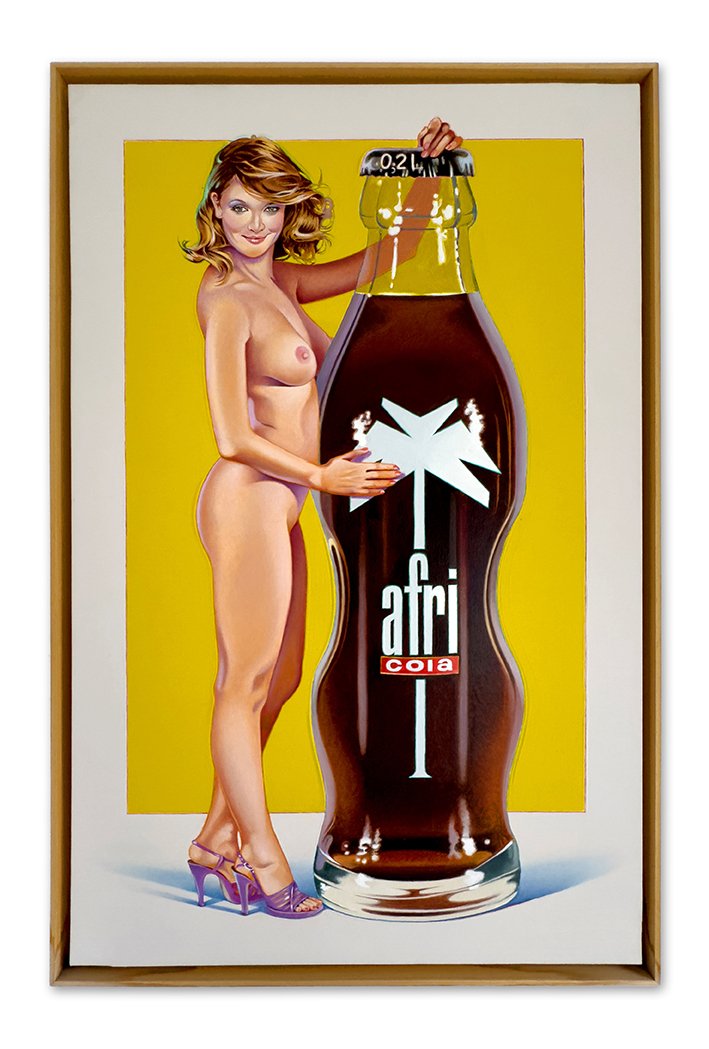 The painting Afri Cola Lola: The lost painting of 1965 #30 (2003) by Mel Ramos is far more than an iconic work of Pop Art – it is also a potentially value-enhancing investment. As an original painting in oil on canvas (91.4 x 61 cm), it is part of the artist‘s late work phase and embodies his characteristic combination of eroticism, irony and brand culture – this time with a special reference to the German cult brand Afri-Cola.
